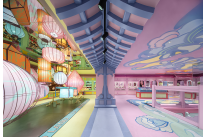 三层色调转入温婉细腻。设计师将南京云锦作为美学蓝本,融入天花、地面。以灯笼为景的零售区,融入秦淮河畔灯会民俗景象,往来如织的节庆活动与热闹的商业空间互为注解。